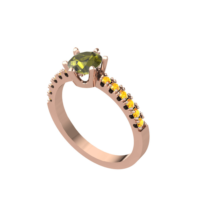 Peridot ve sitrin 8 ayar rose altın yüzük