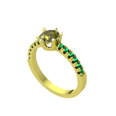 Peridot ve yeşil kuvars 18 ayar altın yüzük