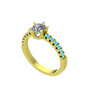 Pırlanta ve akuamarin 925 ayar altın kaplama gümüş yüzük (0.92 karat)