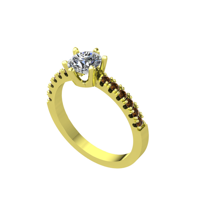 Pırlanta ve dumanlı kuvars 8 ayar altın yüzük (0.92 karat)