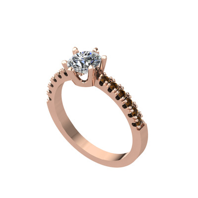 Pırlanta ve dumanlı kuvars 925 ayar rose altın kaplama gümüş yüzük (0.92 karat)
