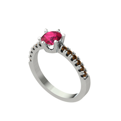 Rodolit garnet ve dumanlı kuvars 14 ayar beyaz altın yüzük