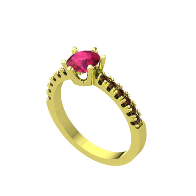 Rodolit garnet ve dumanlı kuvars 925 ayar altın kaplama gümüş yüzük