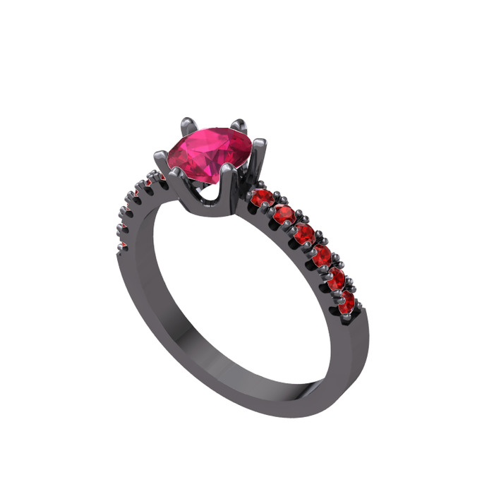 Rodolit garnet ve garnet 925 ayar siyah rodyum kaplama gümüş yüzük