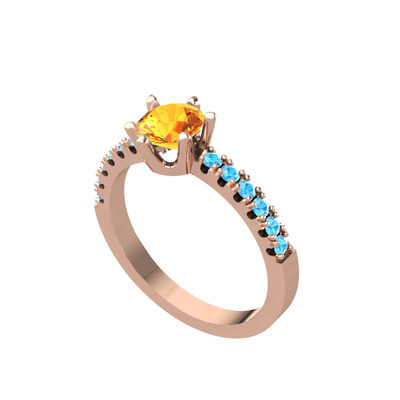 Sitrin ve akuamarin 8 ayar rose altın yüzük