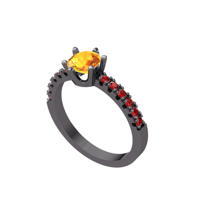Sitrin ve garnet 925 ayar siyah rodyum kaplama gümüş yüzük