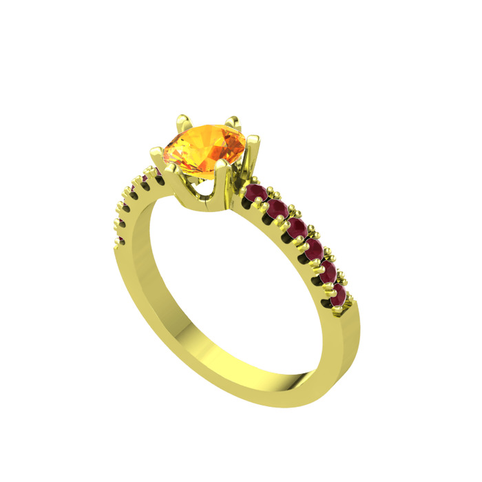 Sitrin ve kök yakut 18 ayar altın yüzük