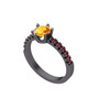 Sitrin ve kök yakut 925 ayar siyah rodyum kaplama gümüş yüzük