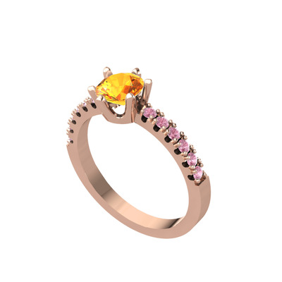 Sitrin ve pembe kuvars 14 ayar rose altın yüzük