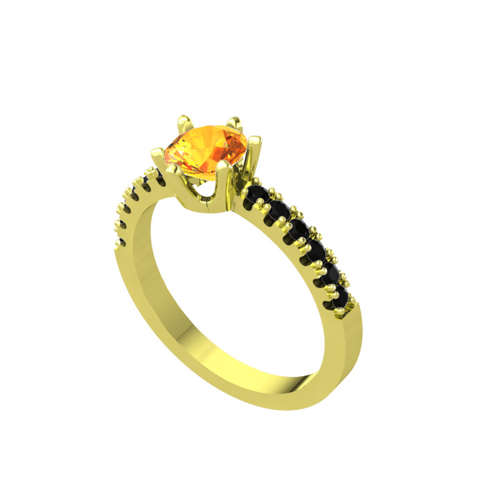 Sitrin ve siyah zirkon 8 ayar altın yüzük