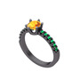 Sitrin ve yeşil kuvars 925 ayar siyah rodyum kaplama gümüş yüzük