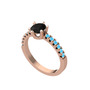 Siyah zirkon ve akuamarin 18 ayar rose altın yüzük