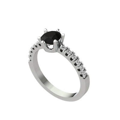 Siyah zirkon ve beyaz zirkon 14 ayar beyaz altın yüzük