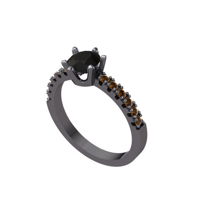 Siyah zirkon ve dumanlı kuvars 925 ayar siyah rodyum kaplama gümüş yüzük