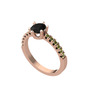 Siyah zirkon ve peridot 18 ayar rose altın yüzük