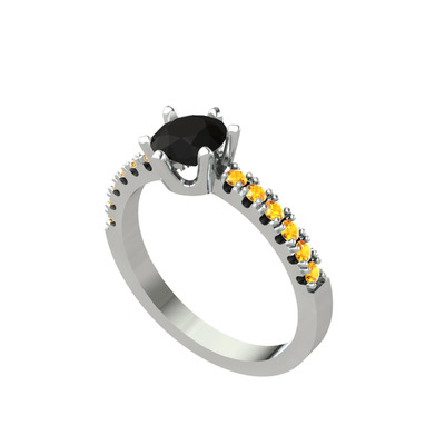 Siyah zirkon ve sitrin 14 ayar beyaz altın yüzük