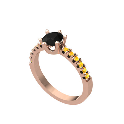 Siyah zirkon ve sitrin 18 ayar rose altın yüzük