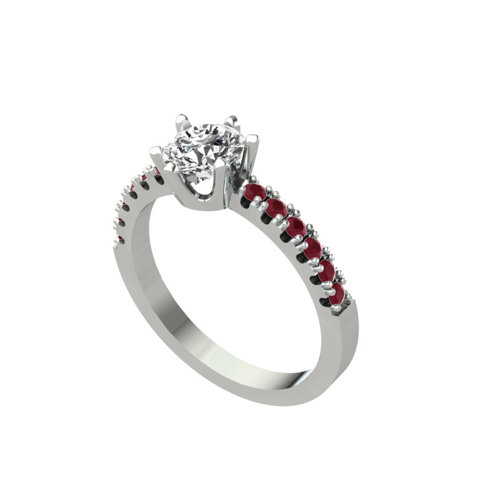Swarovski ve kök yakut 8 ayar beyaz altın yüzük