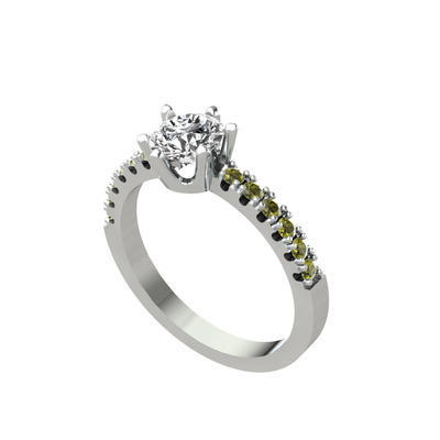 Swarovski ve peridot 14 ayar beyaz altın yüzük