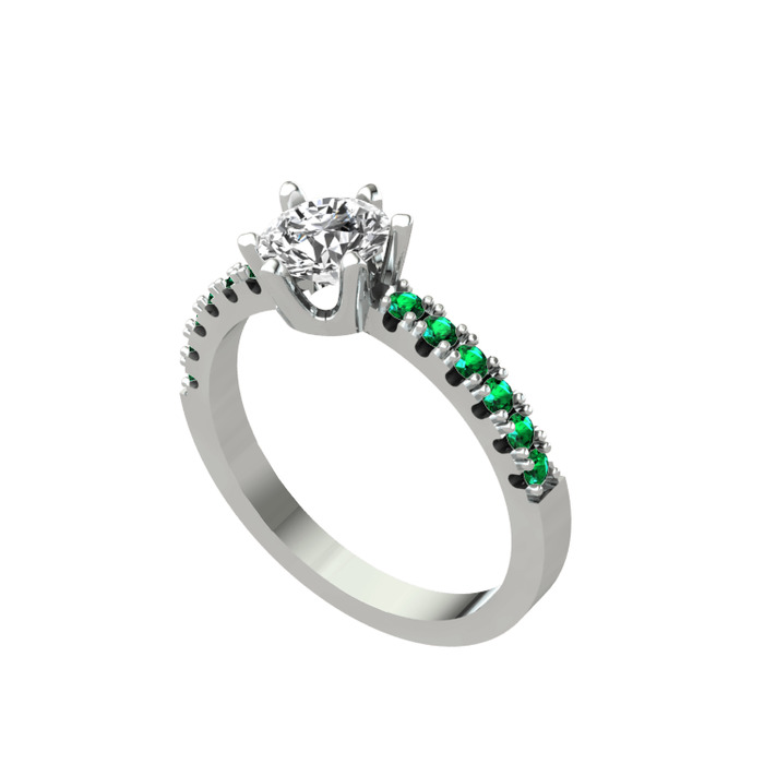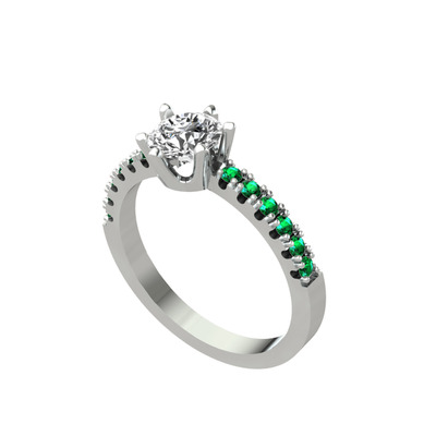 Swarovski ve yeşil kuvars 14 ayar beyaz altın yüzük