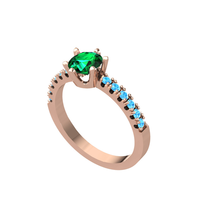 Yeşil kuvars ve akuamarin 8 ayar rose altın yüzük