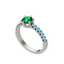 Yeşil kuvars ve akuamarin 925 ayar gümüş yüzük