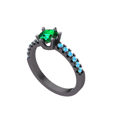 Yeşil kuvars ve akuamarin 925 ayar siyah rodyum kaplama gümüş yüzük