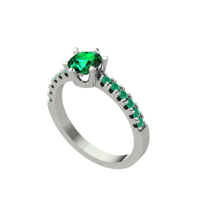 Yeşil kuvars ve kök zümrüt 18 ayar beyaz altın yüzük