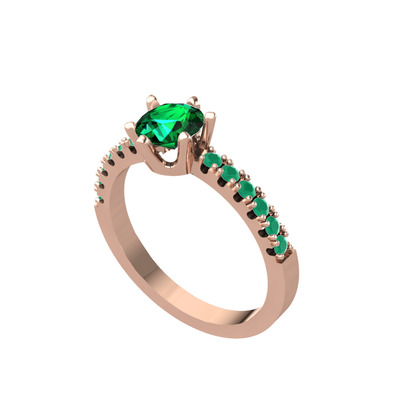 Yeşil kuvars ve kök zümrüt 925 ayar rose altın kaplama gümüş yüzük