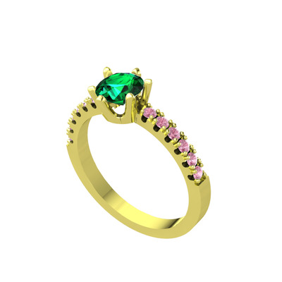 Yeşil kuvars ve pembe kuvars 8 ayar altın yüzük