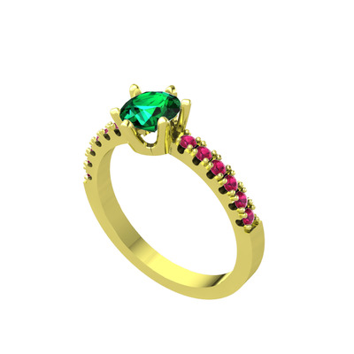 Yeşil kuvars ve rodolit garnet 14 ayar altın yüzük