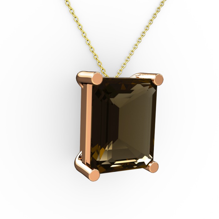 Dumanlı kuvars 14 ayar rose altın kolye (40 cm altın rolo zincir)