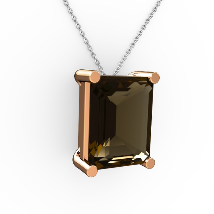 Dumanlı kuvars 8 ayar rose altın kolye (40 cm beyaz altın rolo zincir)