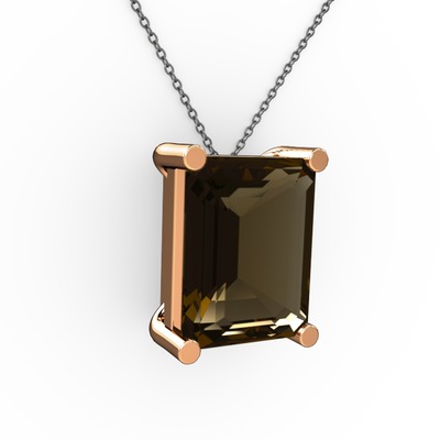 Dumanlı kuvars 8 ayar rose altın kolye (40 cm gümüş rolo zincir)