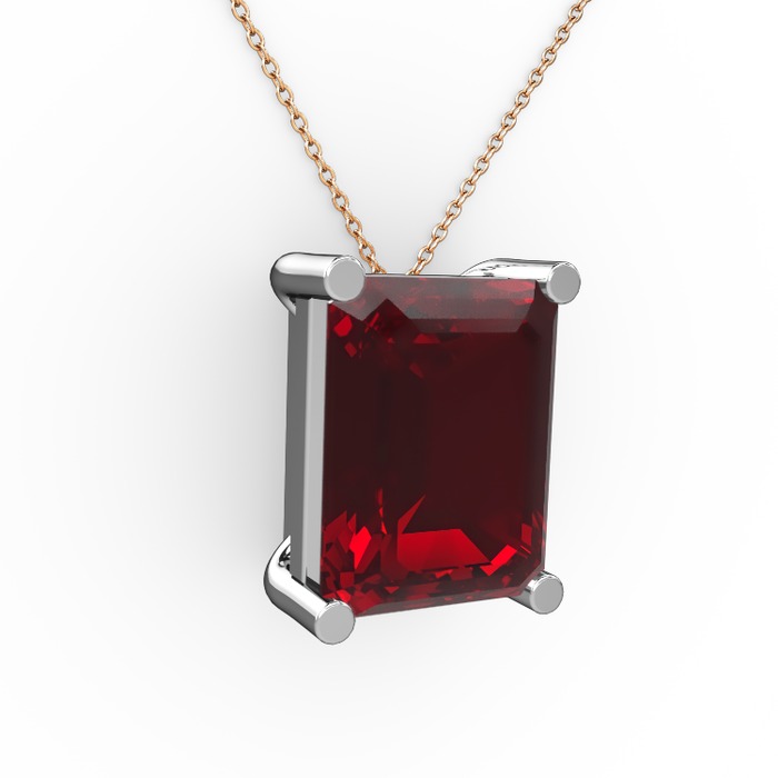 Garnet 8 ayar beyaz altın kolye (40 cm rose altın rolo zincir)