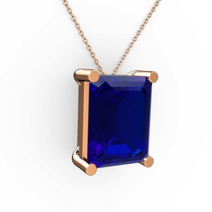 Lab safir 14 ayar rose altın kolye (40 cm gümüş rolo zincir)