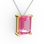Pembe kuvars 925 ayar altın kaplama gümüş kolye (40 cm beyaz altın rolo zincir)
