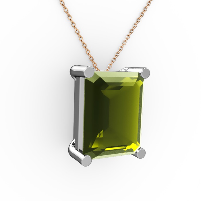 Peridot 14 ayar beyaz altın kolye (40 cm rose altın rolo zincir)