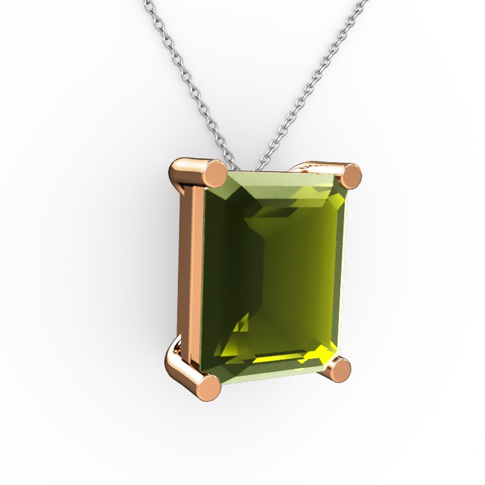 Peridot 8 ayar rose altın kolye (40 cm gümüş rolo zincir)