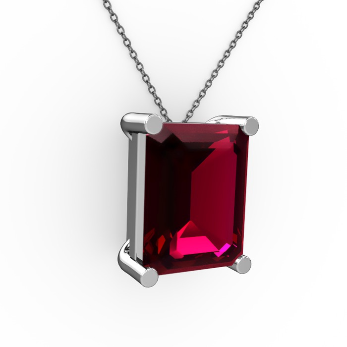 Rodolit garnet 8 ayar beyaz altın kolye (40 cm gümüş rolo zincir)