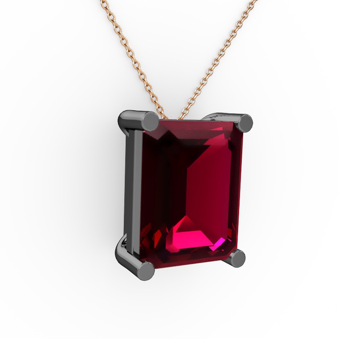 Rodolit garnet 925 ayar siyah rodyum kaplama gümüş kolye (40 cm rose altın rolo zincir)