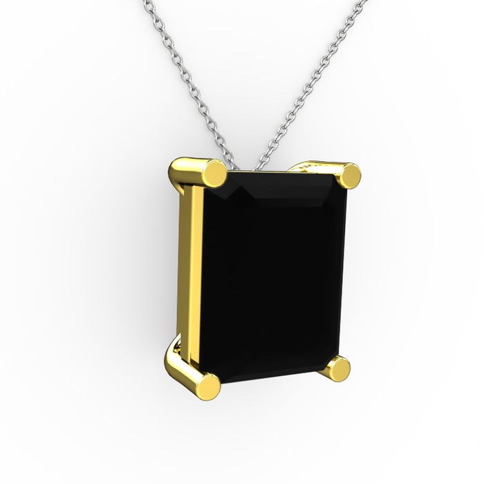 Siyah zirkon 925 ayar altın kaplama gümüş kolye (40 cm beyaz altın rolo zincir)