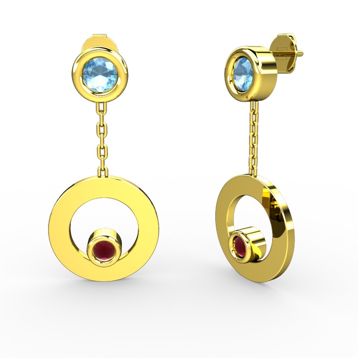 Akuamarin ve kök yakut 14 ayar altın küpe