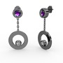 Ametist ve beyaz zirkon 925 ayar siyah rodyum kaplama gümüş küpe