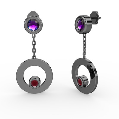 Ametist ve kök yakut 925 ayar siyah rodyum kaplama gümüş küpe