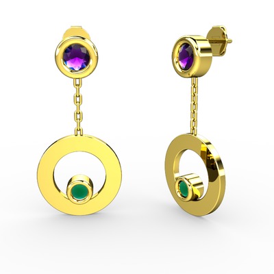 Ametist ve kök zümrüt 18 ayar altın küpe