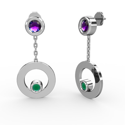 Ametist ve kök zümrüt 18 ayar beyaz altın küpe