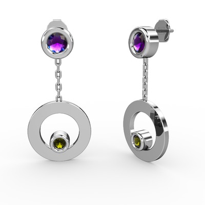 Ametist ve peridot 14 ayar beyaz altın küpe