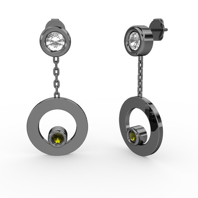 Beyaz zirkon ve peridot 925 ayar siyah rodyum kaplama gümüş küpe