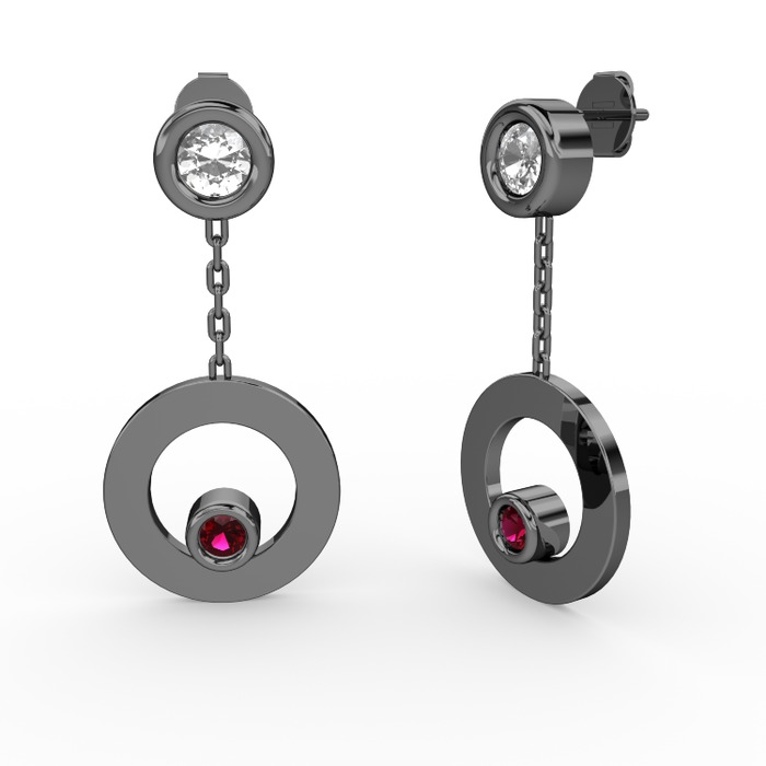 Beyaz zirkon ve rodolit garnet 925 ayar siyah rodyum kaplama gümüş küpe